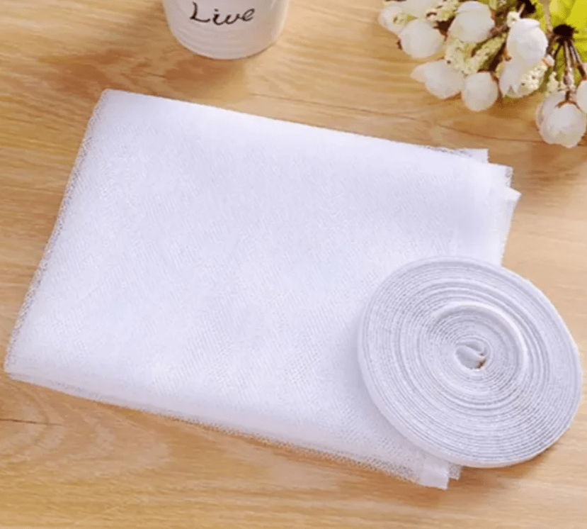 Mosquitero para ventana con malla y cinta autoadhesiva.
